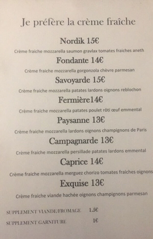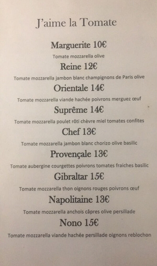 Vous trouverez en plus de la carte, la pizza du moment, bien souvent inspirée par des clients fidèles.